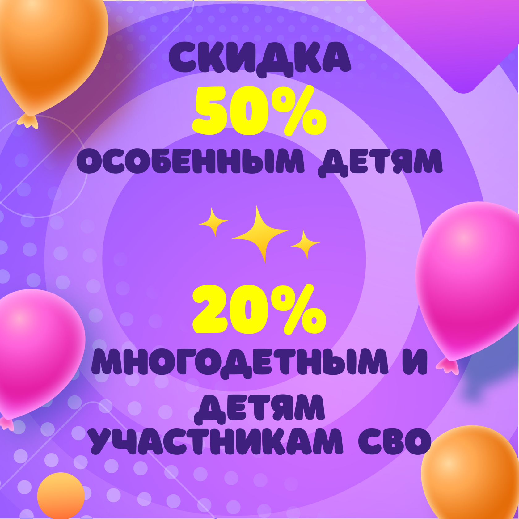 Для многодетных семей и детей участников СВО скидка на вход 20%*
